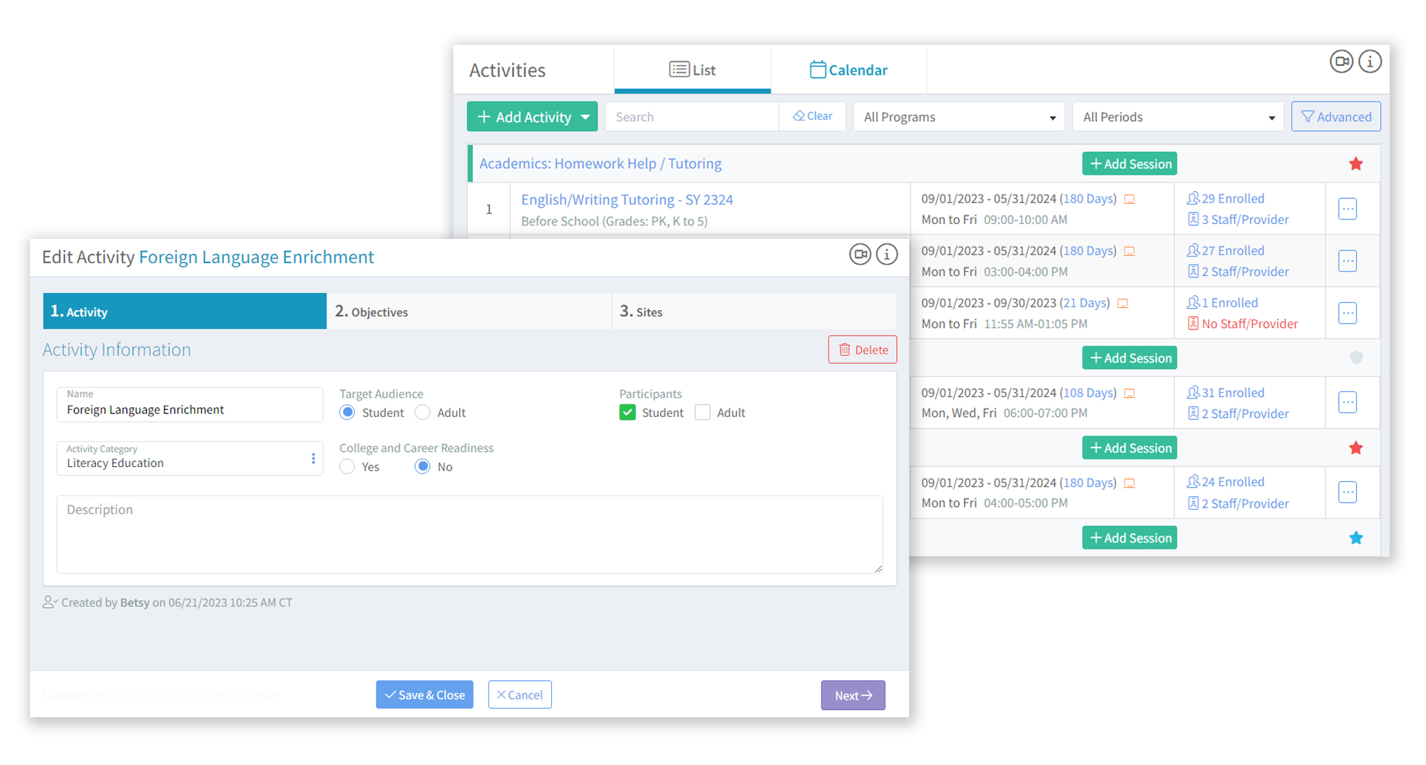 Manage all activities and sessions for your program effortlessly using the EZReports software.